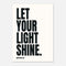 Simple, striking, and straight from Matthew 5:16 — Let Your Light Shine in bold black on white, a minimalist reminder with maximum impact.