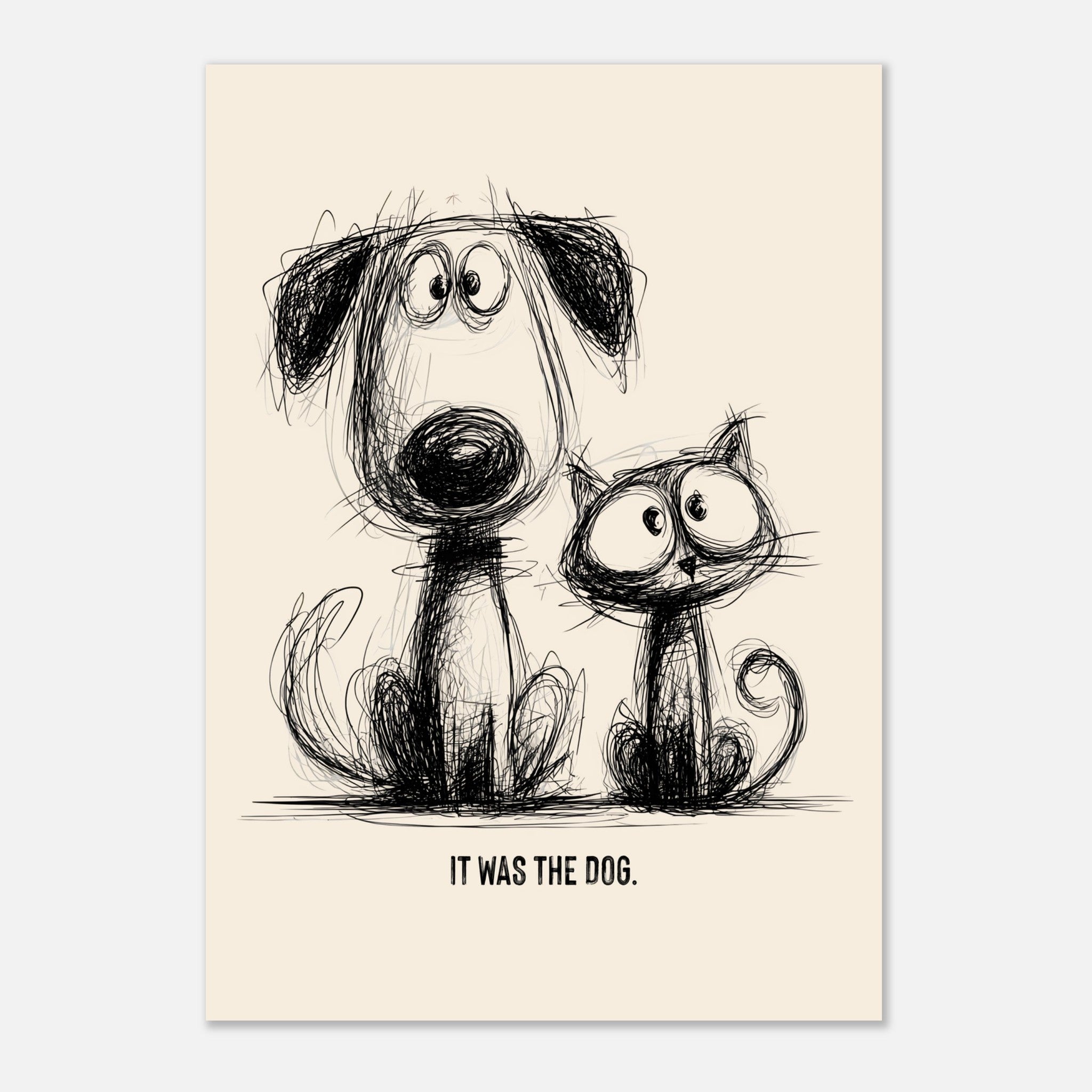 It Was The Dog - Hand Drawn Sketch Style Print | Cat & Dog Wall Art