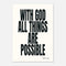 Celebrate limitless hope and divine possibility with this inspiring Bible art print featuring Matthew 19:26"With God all things are possible."