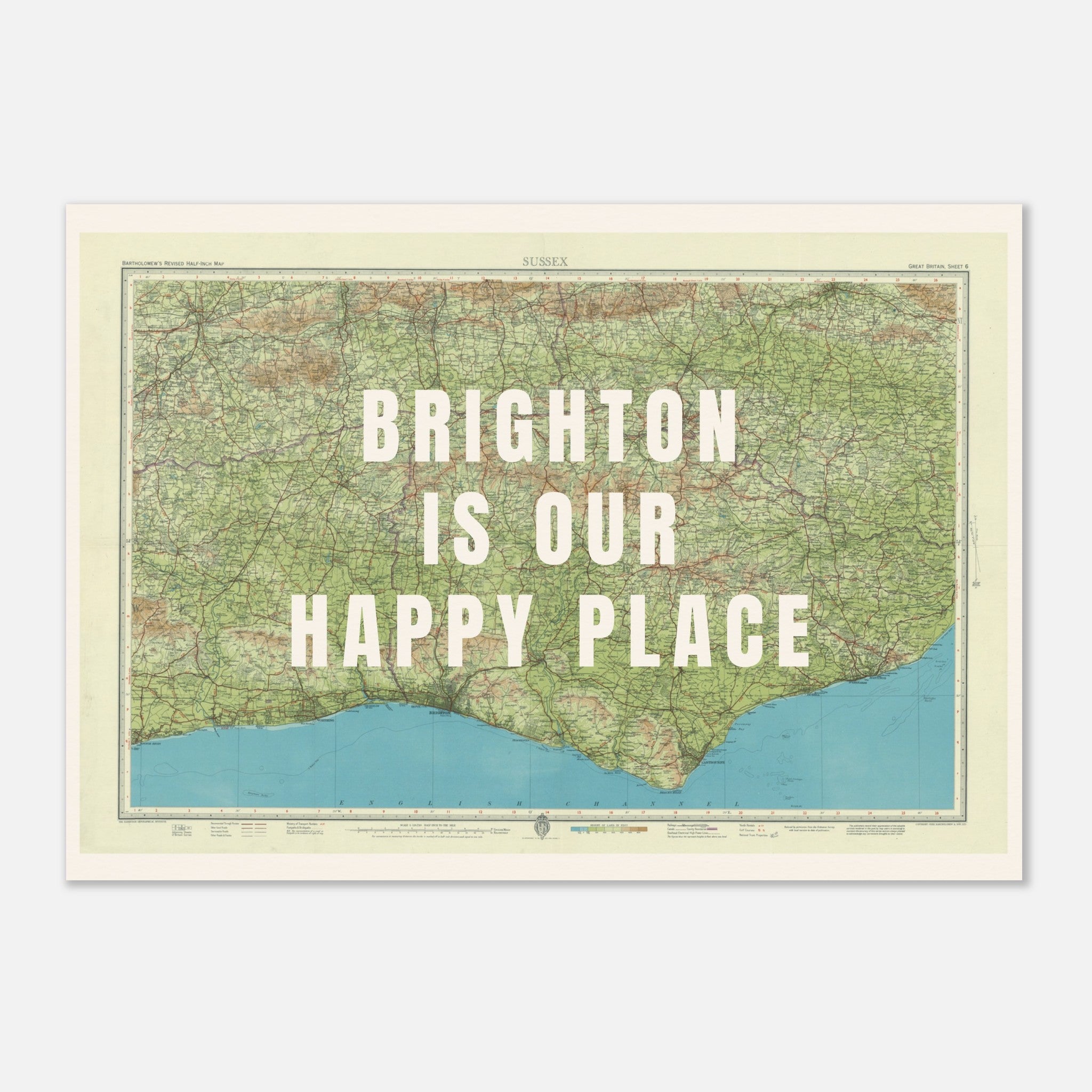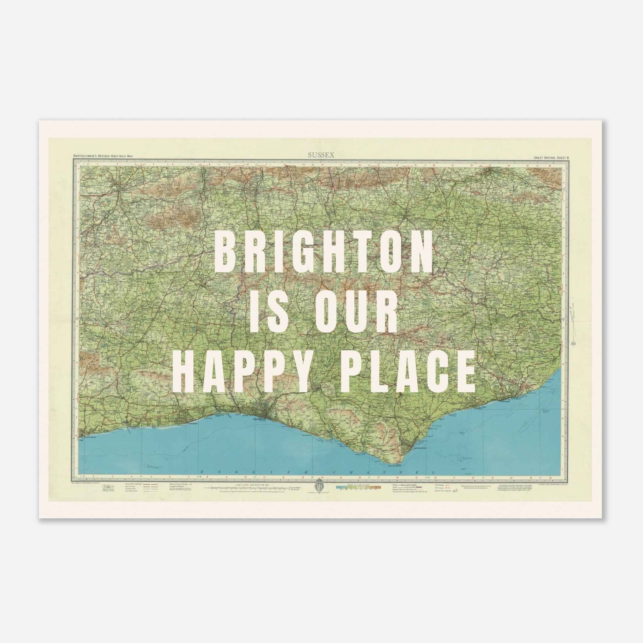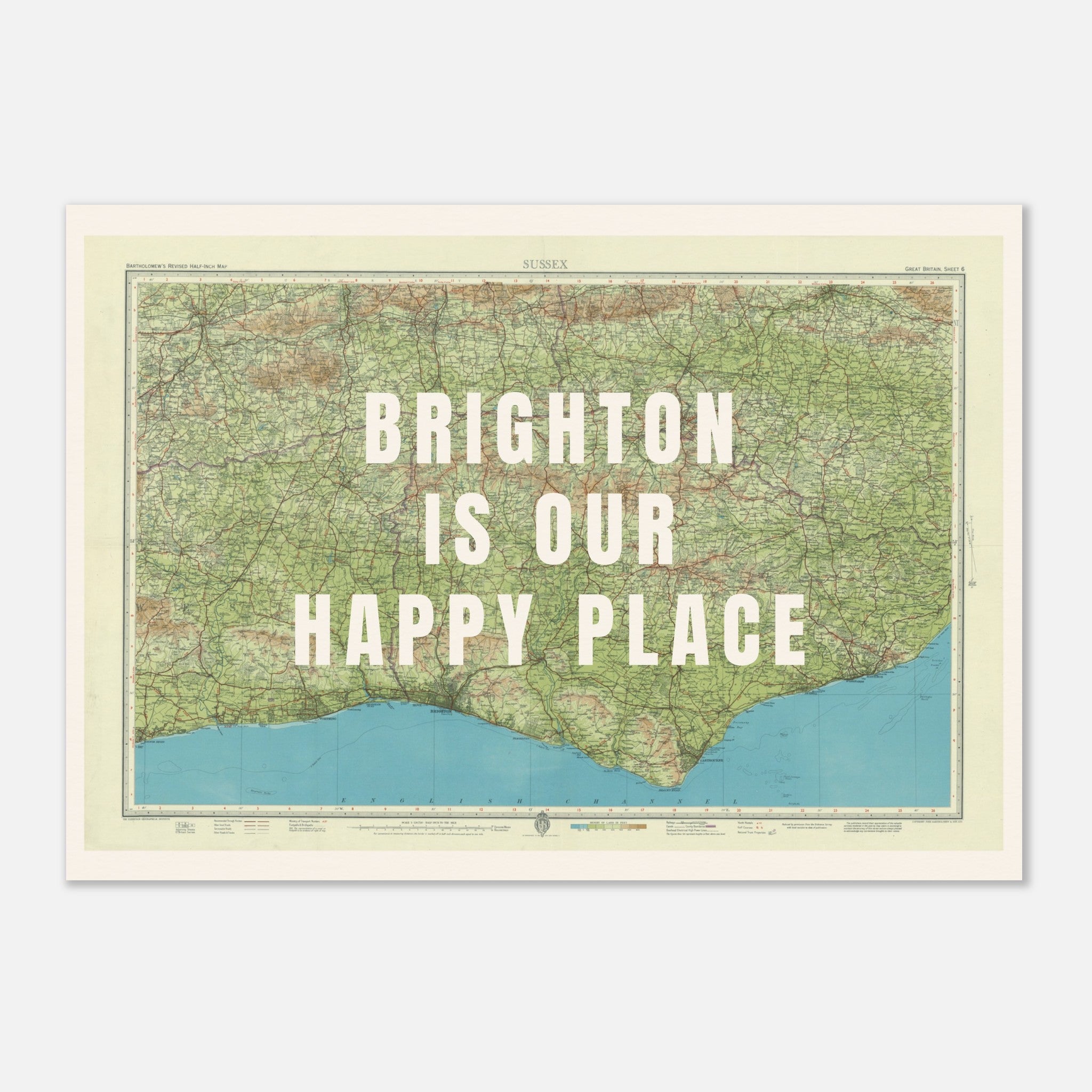 Bringing a little Sussex seaside love to your walls! Styled on Bartholomew's half-inch map of Sussex published in 1942, reproduced under license, with the permission of the National Library of Scotland. A unique piece of statement art for your home from Brighton to Bexhill.