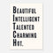 This bold, tongue-in-cheek wall print reclaims the word with pure confidence and zero apologies. ‘Beautiful, Intelligent, Talented, Charming, Hot’ — a declaration of self-love for anyone who knows exactly who they are and isn’t afraid to spell it out… vertically, dramatically, and with a wink. Perfect for adding sass, attitude, and empowered energy to any space.